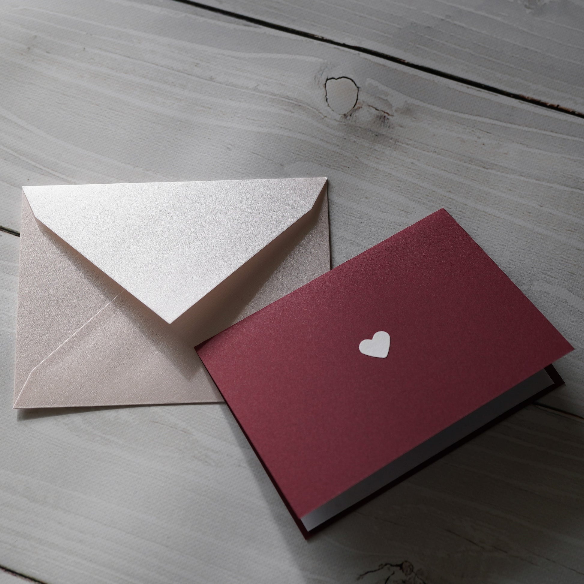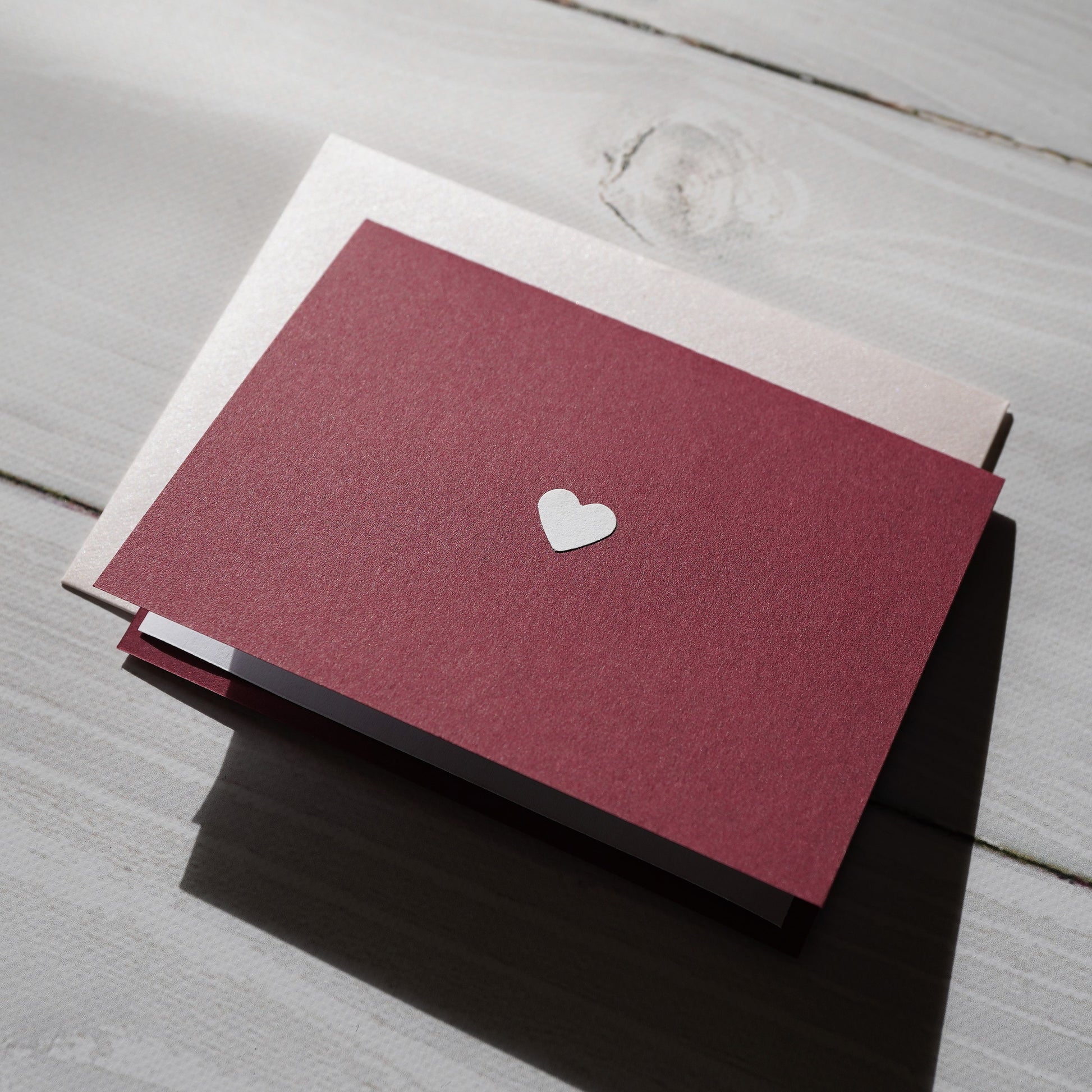 白いハートがワンポイントに入ったボルドーのメッセージカード。