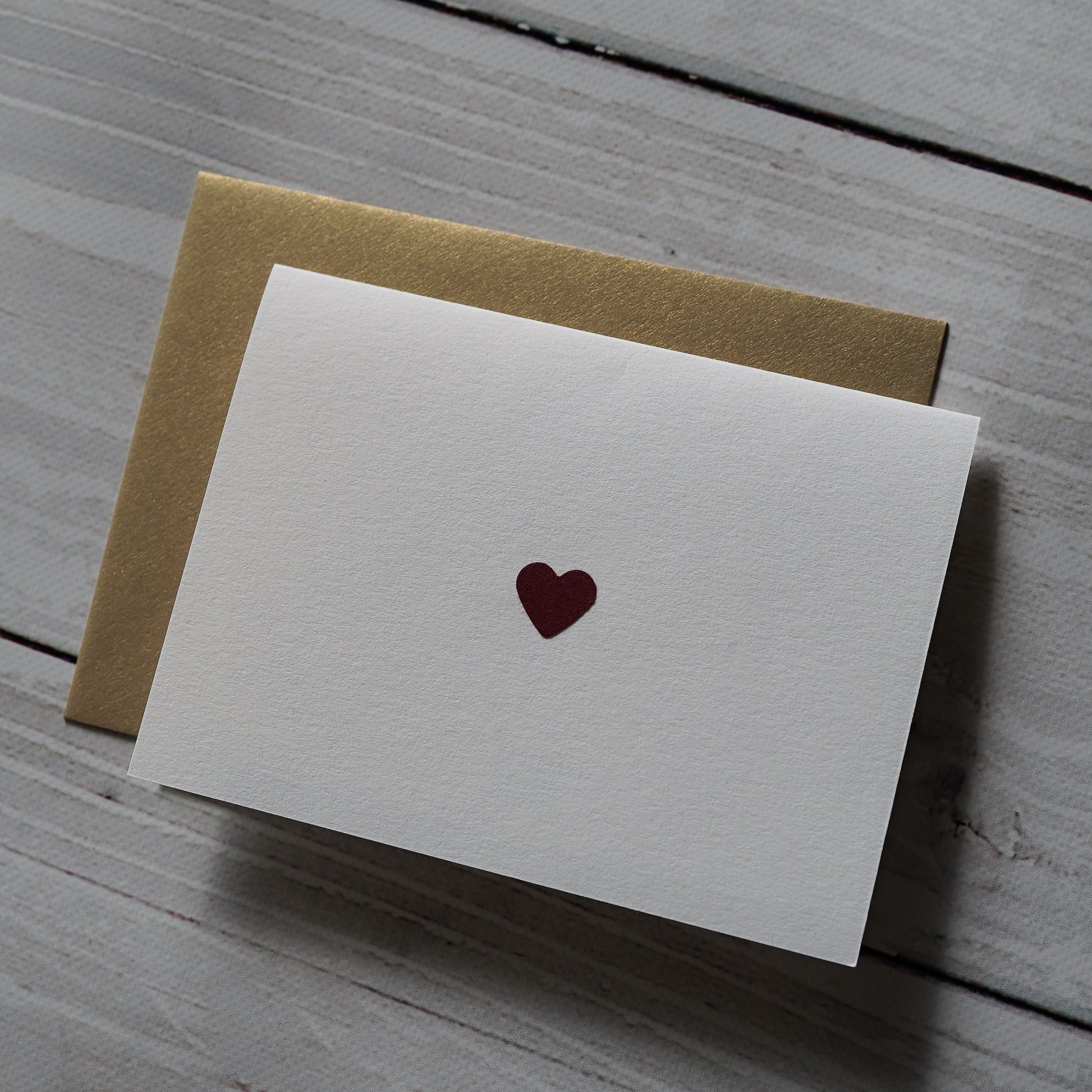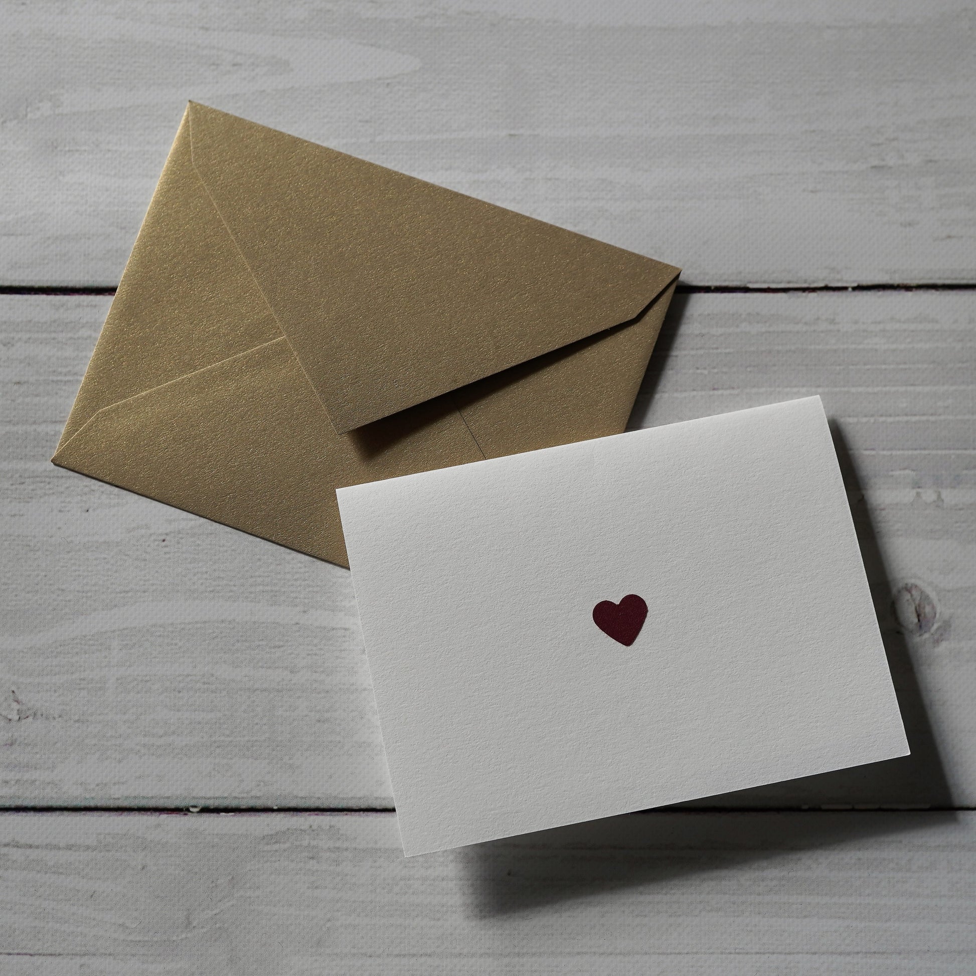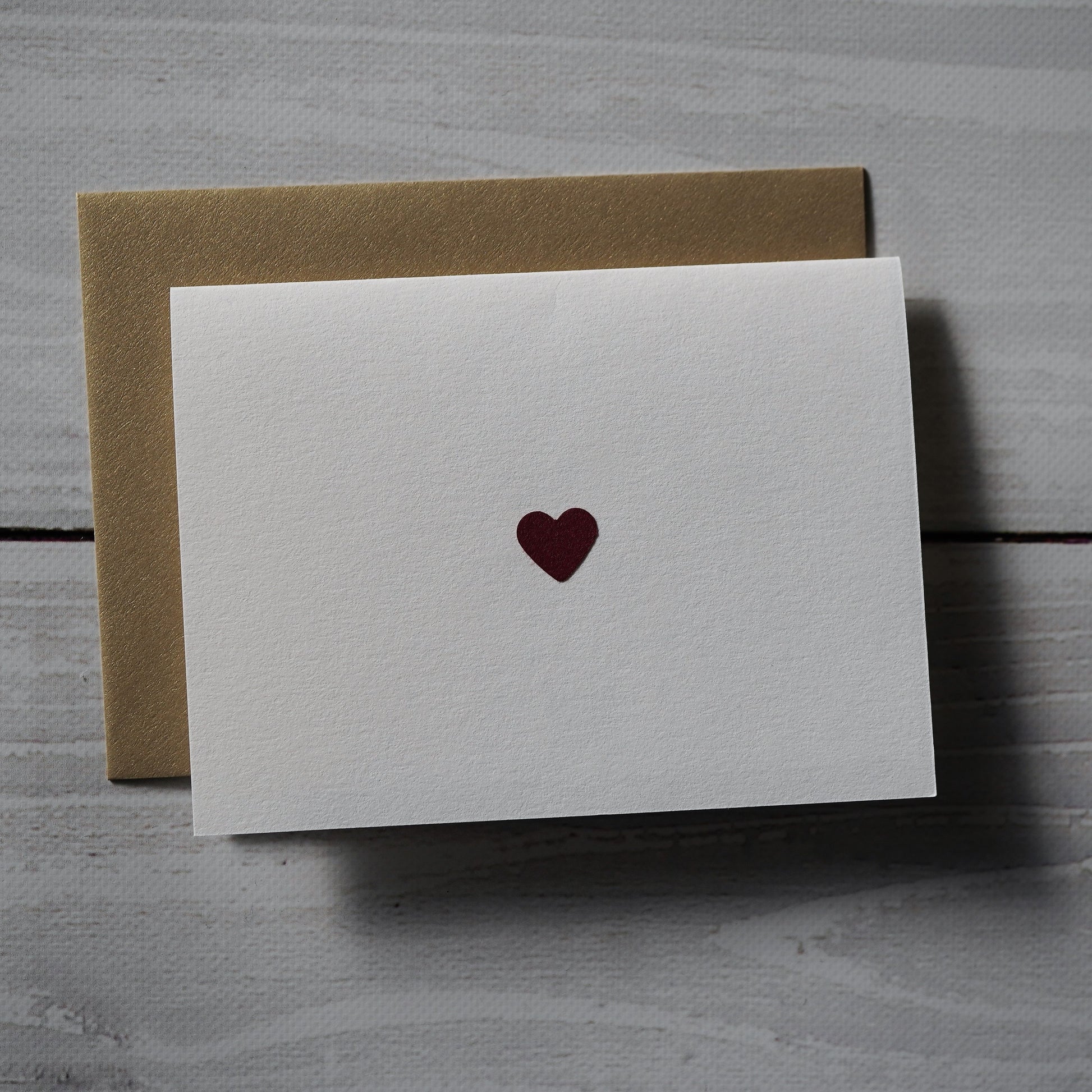 ボルドーのハートがワンポイントに入った白いメッセージカード。