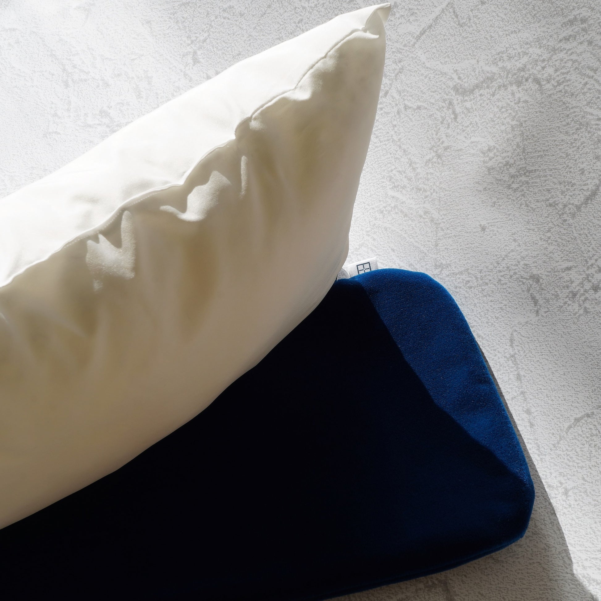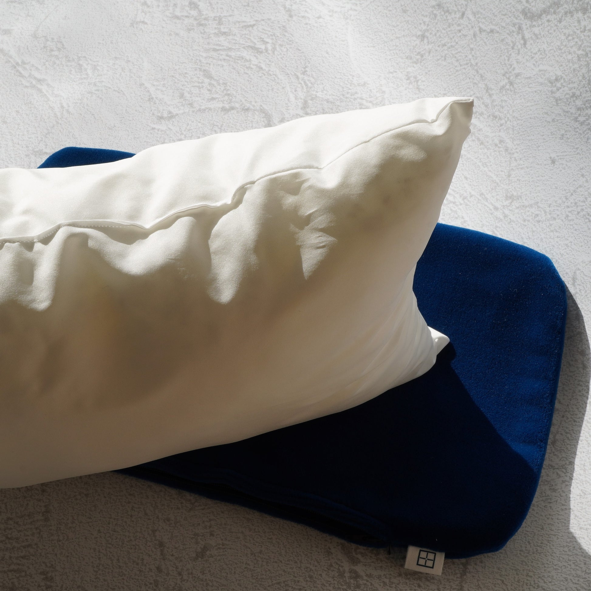 かつて国鉄車両の座席に使われ、多くの旅人にくつろぎを与えてきた青モケット。長年その生地を製造してきたメーカーによって、今も変わらず大切に作られています。落ち着きのある深いブルーと、やさしくもしっかりとした質感を活かし、毎日使いやすいクッションに仕立てました。