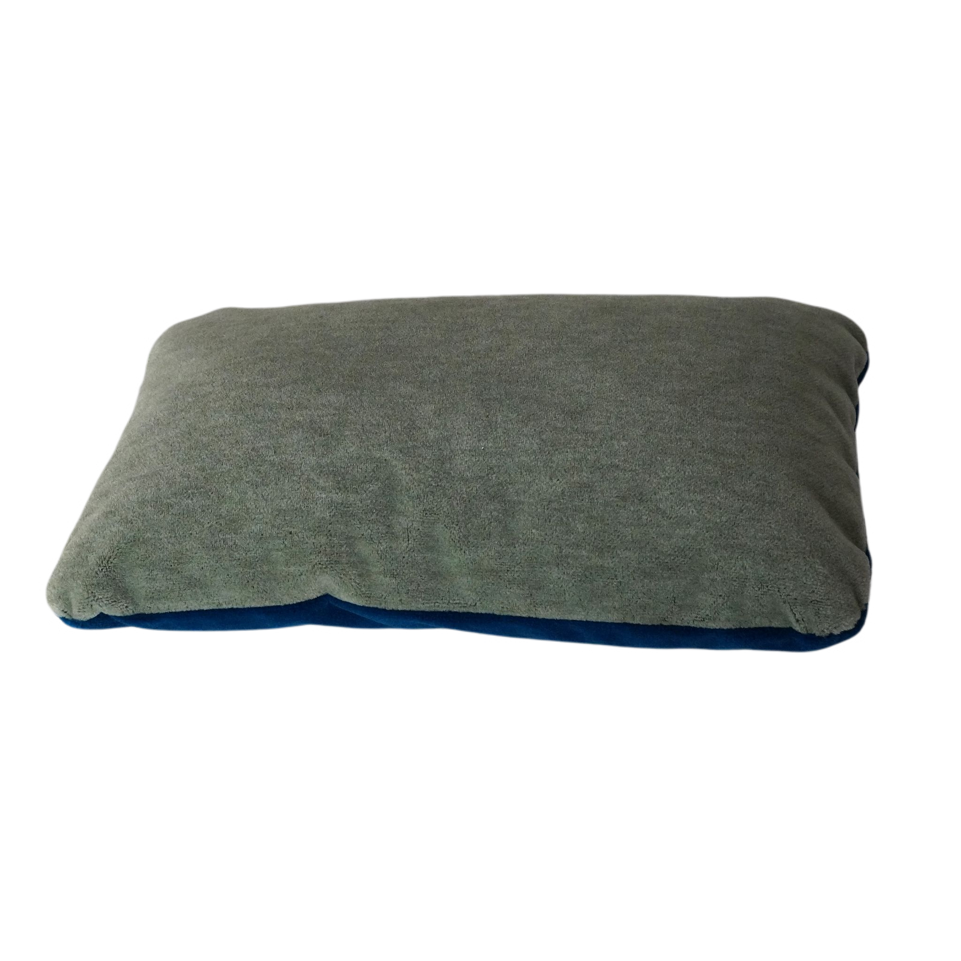 かつて国鉄車両の座席に使われ、多くの旅人にくつろぎを与えてきた青モケット。長年その生地を製造してきたメーカーによって、今も変わらず大切に作られています。国鉄新幹線車両で使われていた座席のイメージで落ち着きのある深いブルーとグレーモケットを組み合わせ、やさしくもしっかりとした質感を活かし、毎日使いやすいクッションに仕立てました。