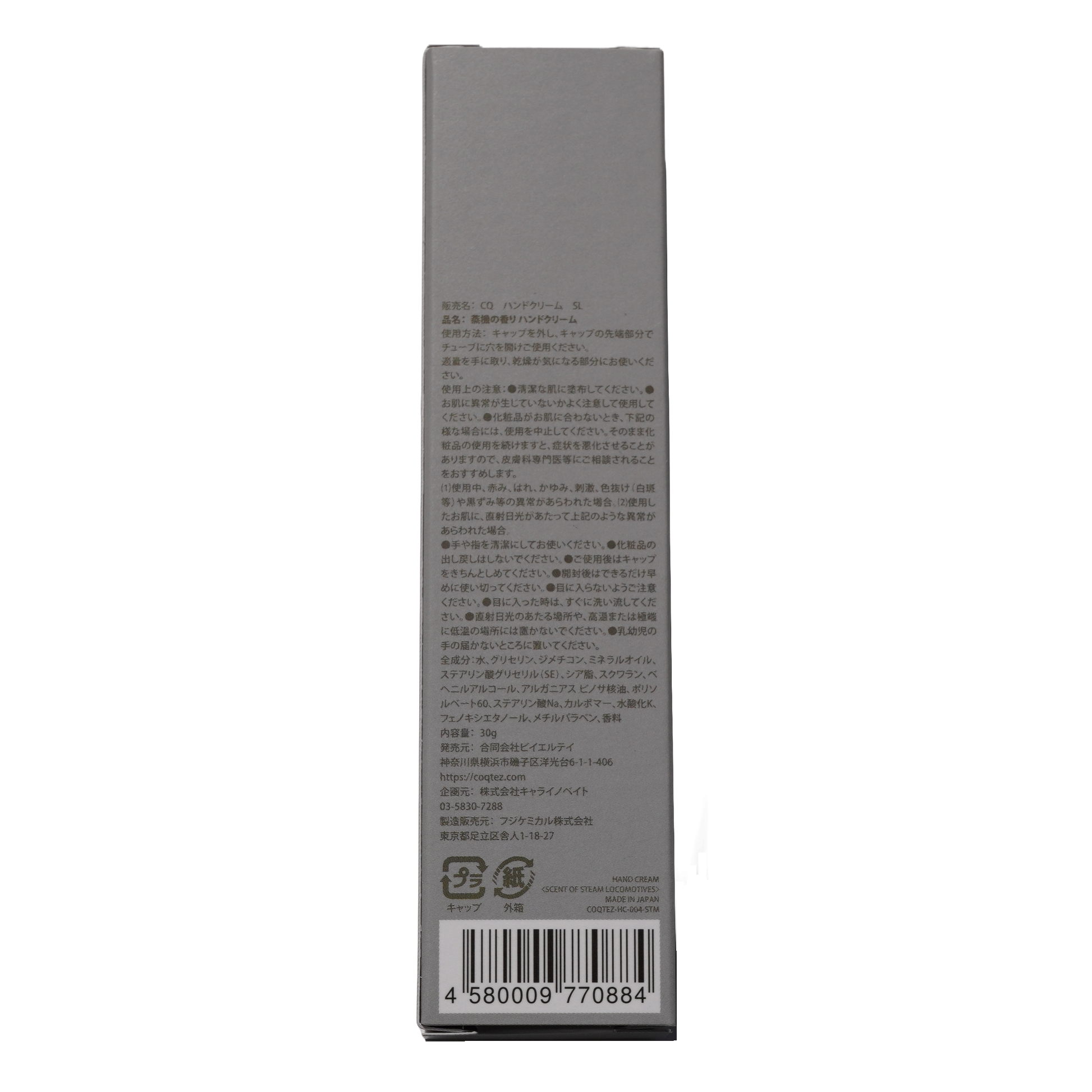 - 蒸気機関車の甘い煙を感じる石炭と蒸気の香りを表現したハンドクリームです。